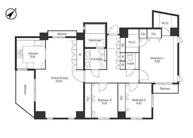 広々とした贅沢な3LDK+2WIC(専有面積:106.23㎡)